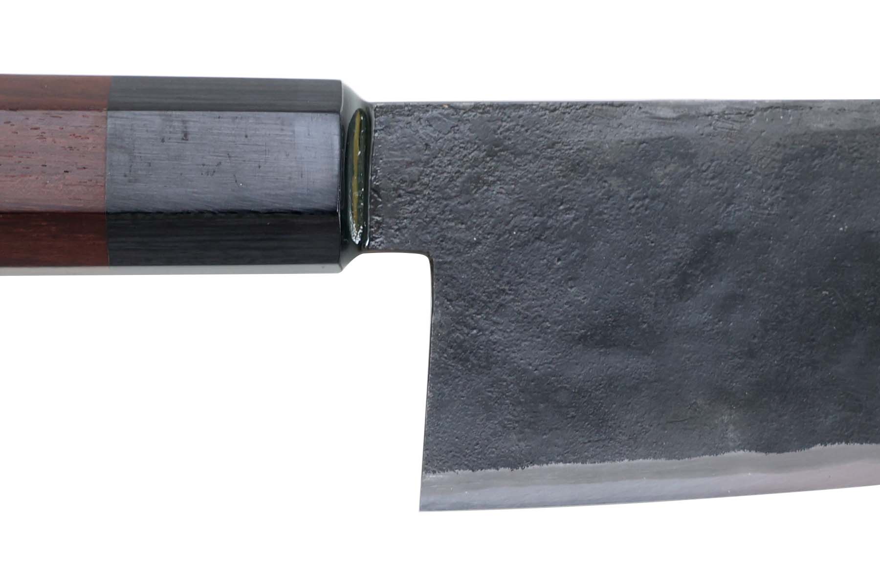 Lame en acier aogami super, flancs en acier inox, 63±1 HRC.