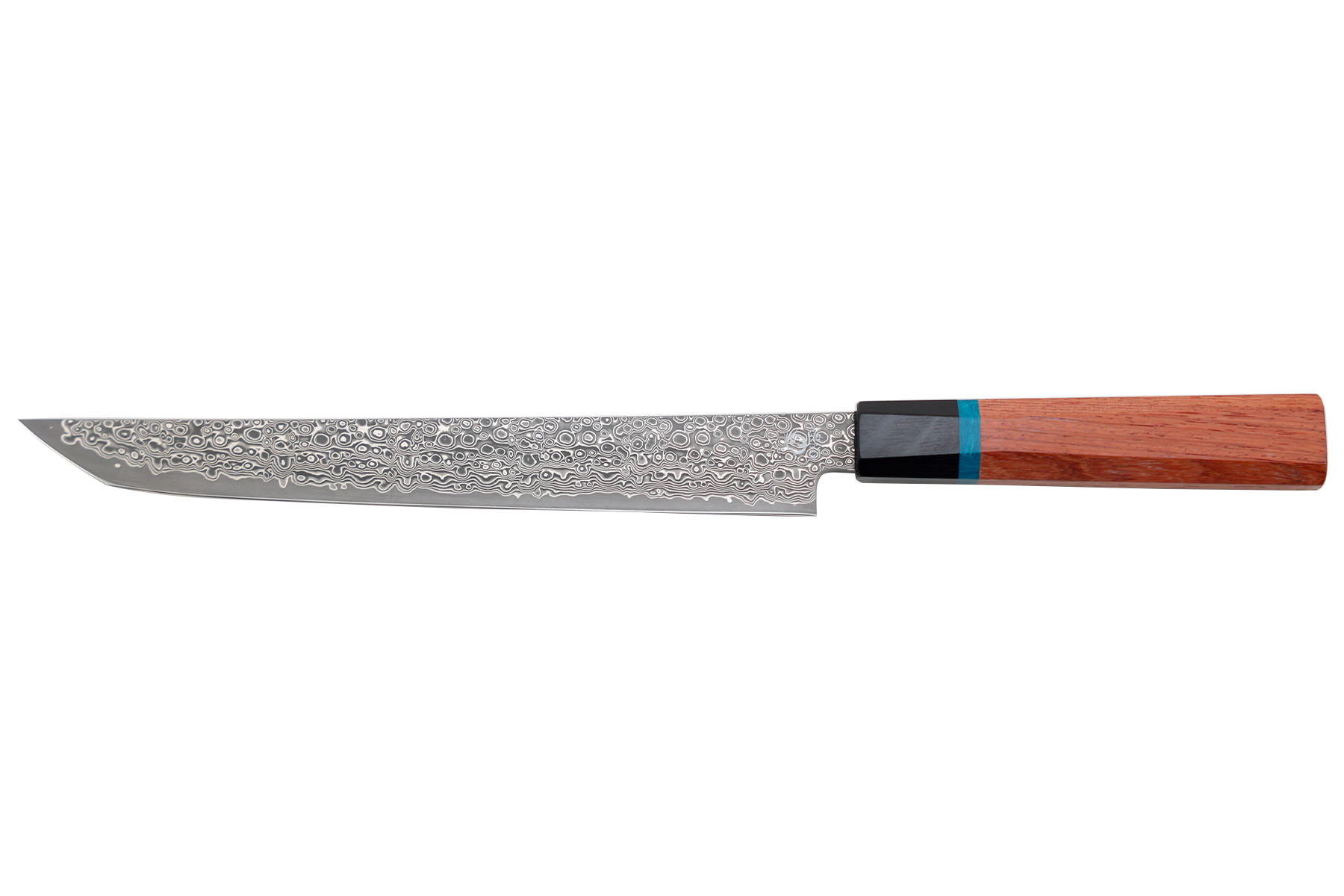 Manche traditionnel octogonal en pakkawood, intercalaire en résine bleue.