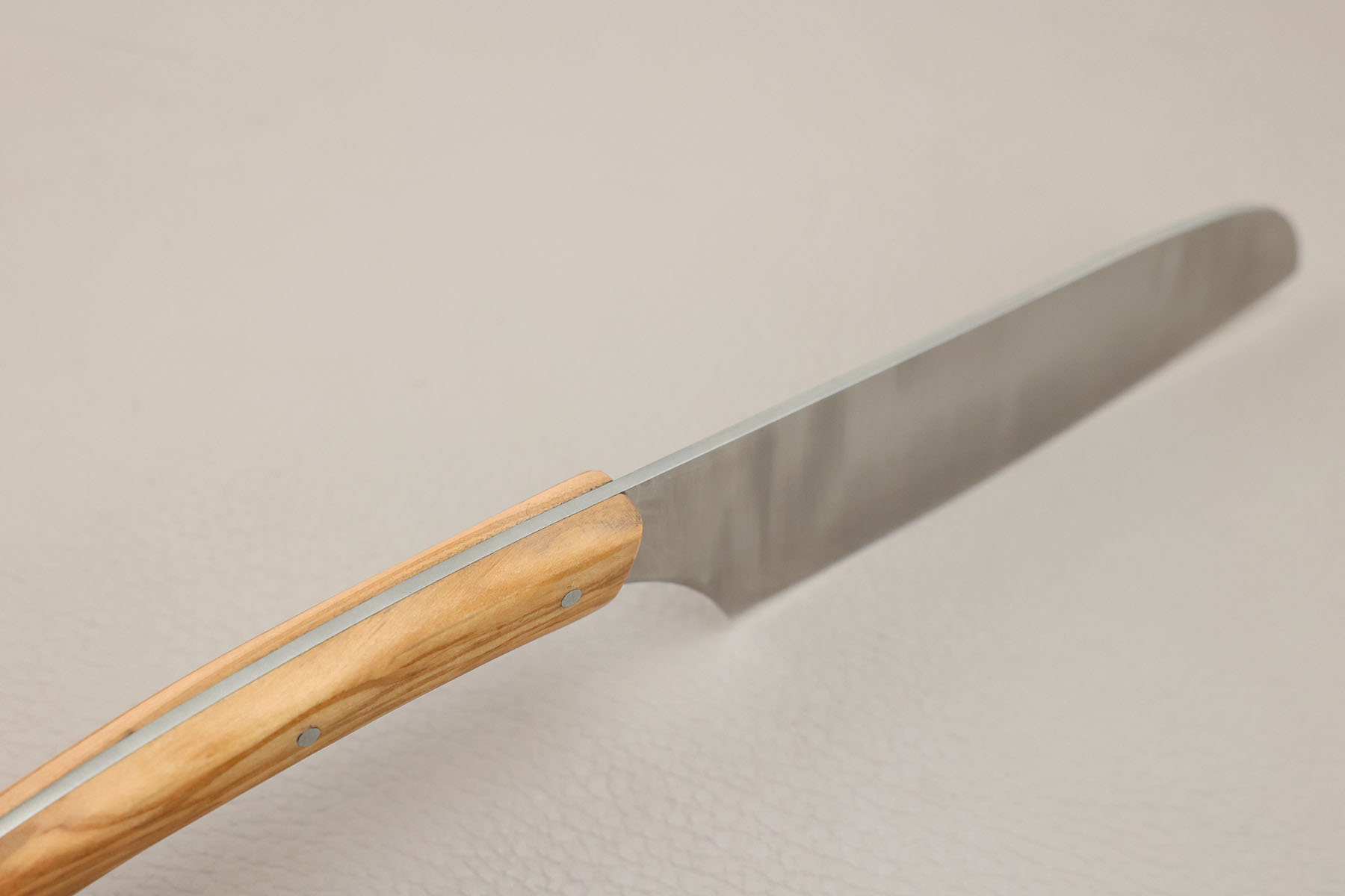 Lame 13 cm en acier X50CrMov15 et manche en olivier.
